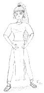 Aischa kommt eindeutig aus dem tulamidischen Kulturraum, was ihre Vorlieben für bestimmte Kleidung erklärt, welche genügend nackte, gebräunte Haut durchscheinen lässt. Ihr normales Reisegewand besteht aus leichtem, strapazierfähigen Stoff, der hellblau gefärbt wurde. Der Schnitt ist ungewöhnlich offen und gewagt - für eine Magierrobe. Oben ist sie schon recht großzügig ausgeschnitten und besitzt nur kurze Ärmel, und ab der Taille abwärts ist die Robe auf beiden Seiten geschlitzt, so daß Aischa sehr viel Beinfreiheit hat. Dazu trägt sie je nach Witterung offene Schnürsandalen oder leichte Schuhe.