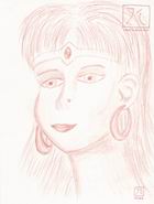 When in Bartertown Vara can lately be seen wearing more urban clothing. She usually wears long, white linen pants bound at the ankles and a wide top of varying design, sometimes short and showing her midriff, sometimes with sleeves. Her feet are covered with soft, light shoes or she might even wear espadrilles with heels. Both arms are covered by a variety of different silver bangles, small and large, some with patterns. A pair of varying, but mostly large silver hoops sparkle in her ears and a stud with a white gem in her left nostril. She also likes to wear a silver tiara with a large emerald that she had brought back from one of her adventures.