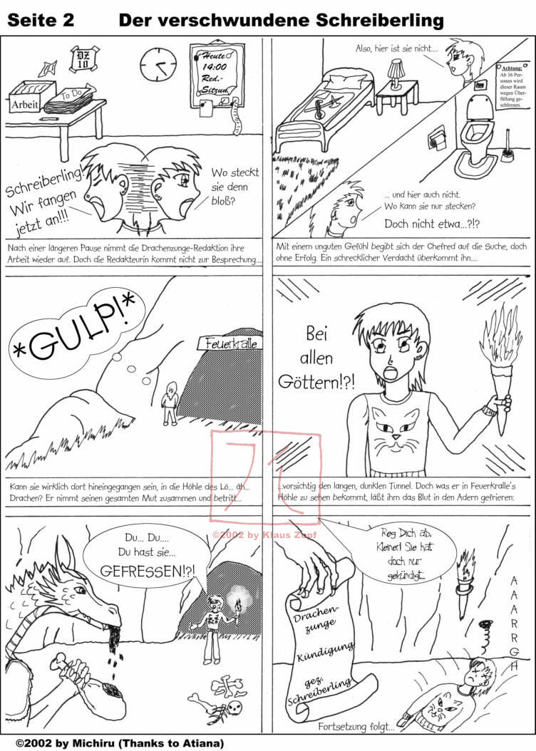 All who can read German, please enjoy. The story is about the club-magazine "Die Drachenzunge" ("Dragon's tongue" featuring the dragon "Feuerkralle" - "Fireclaw" - as kind of boss) of our old roleplaying-club "Helle Barden".