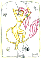Aischa has learned to transform herself, too, and now she's going for a walk (or maybe for a flight?) in her temporary quad-shape. And she really seems to enjoy it. --->:-) |
