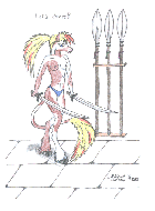 Rhean, an equine swordmaster from a distant fantasy realm, is preparing herself for a swordfight lesson. I like this char... maybe I'll write a story about her...