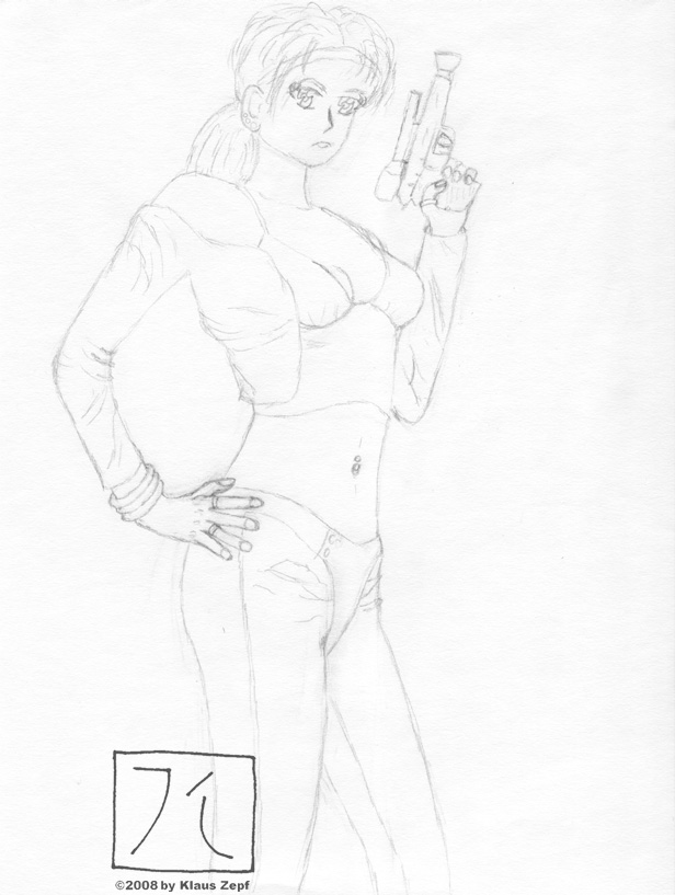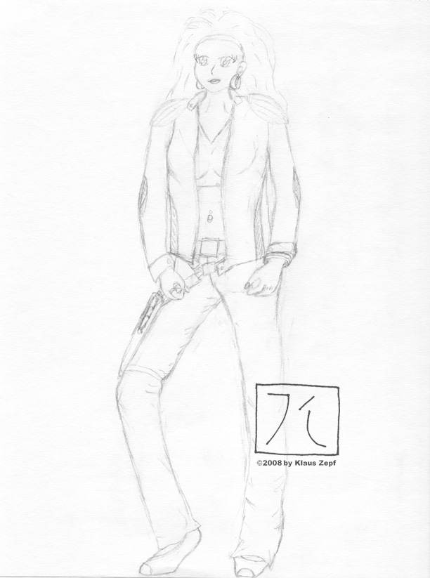 My favorite picture of Trance Killian so far, and it's a shame I didn't have the nerve to try and color it yet. I very much like how the clothes worked out and her whole appearance finally conveys her sexy and confident attitude. She knows exactly who she is and what she's capable of.