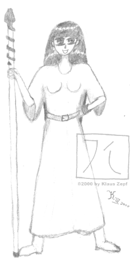 Lana Zandor, a young human battlemage (watch out for her fireballs! *g*) from the German RPG-system 'Das Schwarze Auge' (aka. 'The Dark Eye'). One night in January I sat down and had this urge to draw something out of my mind. This is the result (after about one hour of work). It's also one of the first times that I tried shading my pictures. |