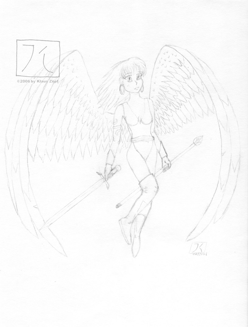 Finally, I got up and started to draw a new and cool picture of my favorite Earthdawn-character Teleria.
