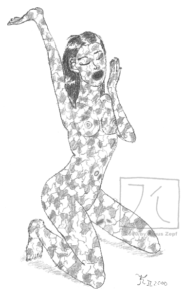 I remember that I made this picture during a week's stay at a hotel when I attended a computer certification Training. I had no template for the pose, but had this idea in my head and couldn't stop before I finished it.