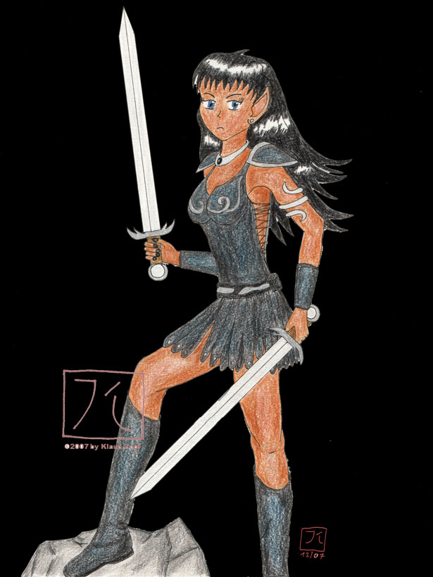 The colored picture of my Earthdawn swordmaster and Horror-Stalker Teleria of K'than.