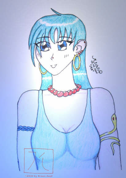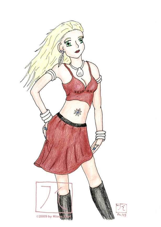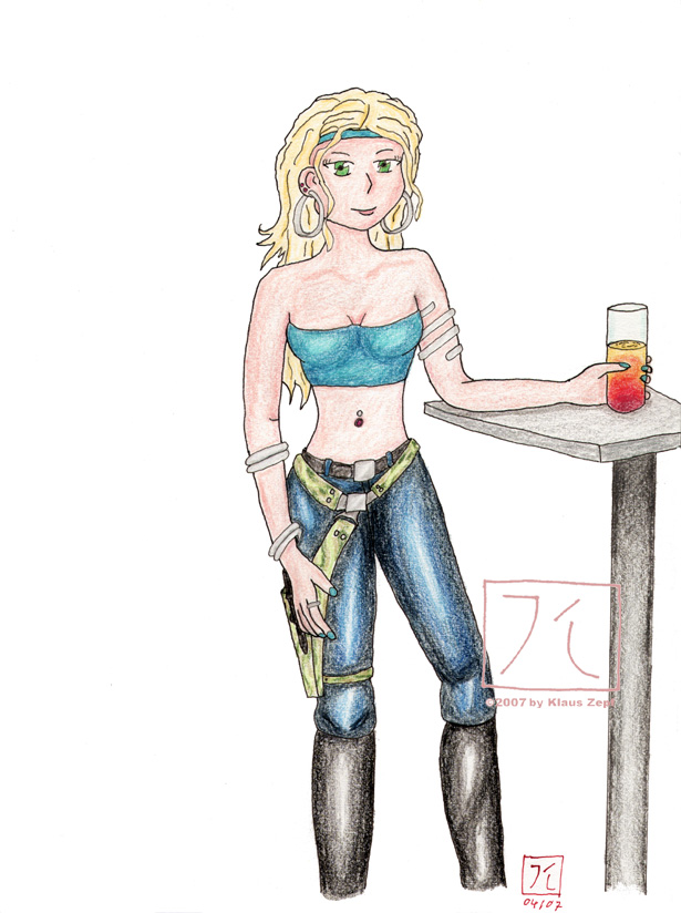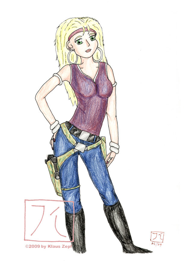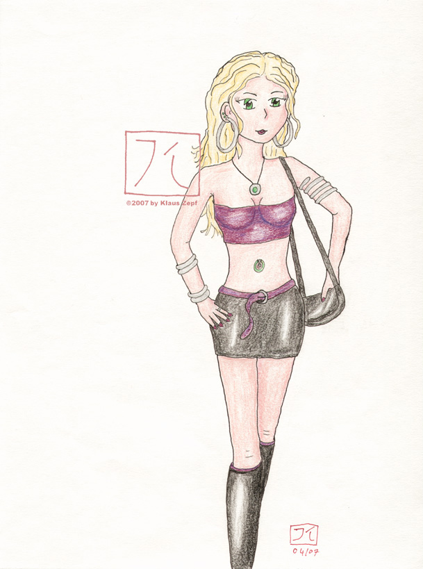 I know I messed up several aspects of this picture, like too short arms and fingers and stuff, but unlike the screwed portrait of Trance I really like this picture because it shows her more like I imagine her to look like. |