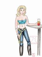So, here she is in her "normal" clothing, carrying her heavy blaster pistol at her side and sipping on a "Tatooine Sunrise" cocktail, that's what we nicknamed our in-game version of a Tequila Sunrise. |