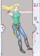 As a smuggler, Trance Killian often gets herself into a mess that sometimes can't be settled by other means than a firefight. Here, she's standing on a little walkway, leaning over to fire a few shots at her pursuers while the bulkhead door of the Hangar closes. |