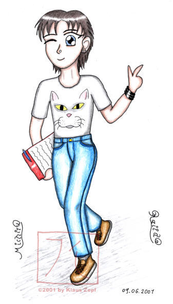 This gallery features pictures drawn in Manga-style and colored with traditional media like standard colored pencils, aquarelle pencils or Polychromos, a special sort of crayon-pencils based on oil instead of wax which makes the colors brighter etc. Some pictures are also enhanced with computer created elements like a background etc. I consider this still a traditionally colored picture.