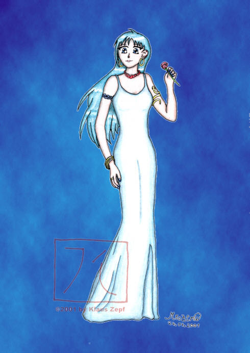 I started drawing this picture sometime in February 2001, but never got finished until May. It features Michiru dressed up to attend a ball or such.