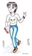 This is the first time that I've tried to draw a picture of my real-life self. But since I'm not good at realistic drawings I made it an SD-manga picture. It was colored with polychromos. The colors are a bit weak, but that's because I used a different coloring technique back then.... I think I've learned to do it better now... Note: Of course, I look a lot different now. ;) |