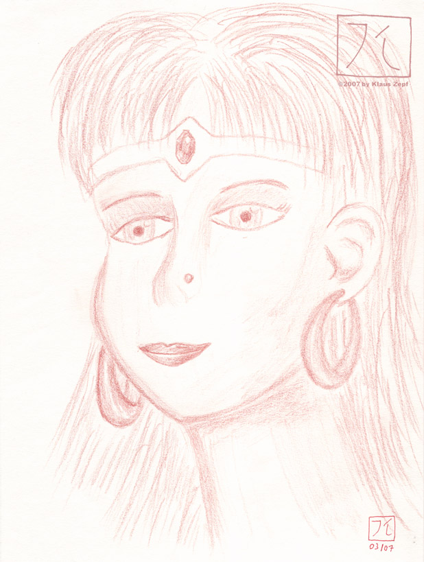 After some break I decided to give it a new try to portray some of my roleplaying-characters. This is the third this year so far and it shows Vara Pak-Ti, one of my Earthdawn characters. She's an archer and scout and came from a primitive jungle-tribe and only recently looted a lost treasure, which gave her enough finances to pay an appartement and buy some civilized clothes. There was also some jewelry in this treasure which she is wearing now. |