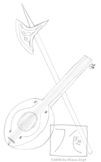 Our old roleplaying club back then needed an official club-logo. We made a little contest and this was my entry. The logo features a poleaxe and a lute, which makes for a little word play (in German) with the club's name "Helle Barden". That name could mean "Poleaxes" as well as "Bright Bards", and is - by the way - the German title of a Discworld novel (Men at Arms). Meanwhile, the club doesn't exist anymore. |
