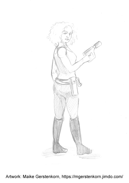 Since she has lost almost everything material when she had “died”, Mel now wants to make a fresh start and has signed on as a pilot aboard Mia’s freighter “Crimson Fury”. This way she hopes to return the favor and help Mia deal with her past.