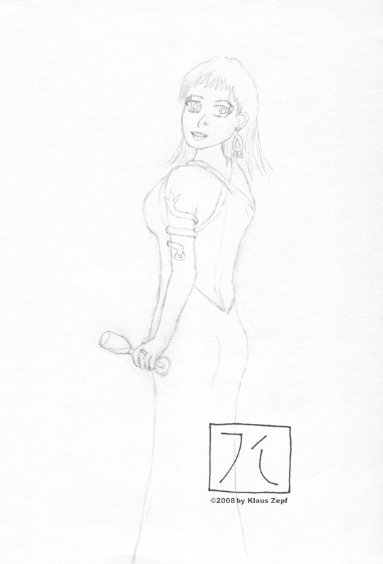 Credit to her noble heritage she usually takes good care to appear decent, during service and in her spare time. When not on flight-duty she usually wears her uniform tidy and according to regulations, with her hair usually tied up in a knot or pony-tail. For informal occasions she might discard the uniform jacket and loosen her hair knot.