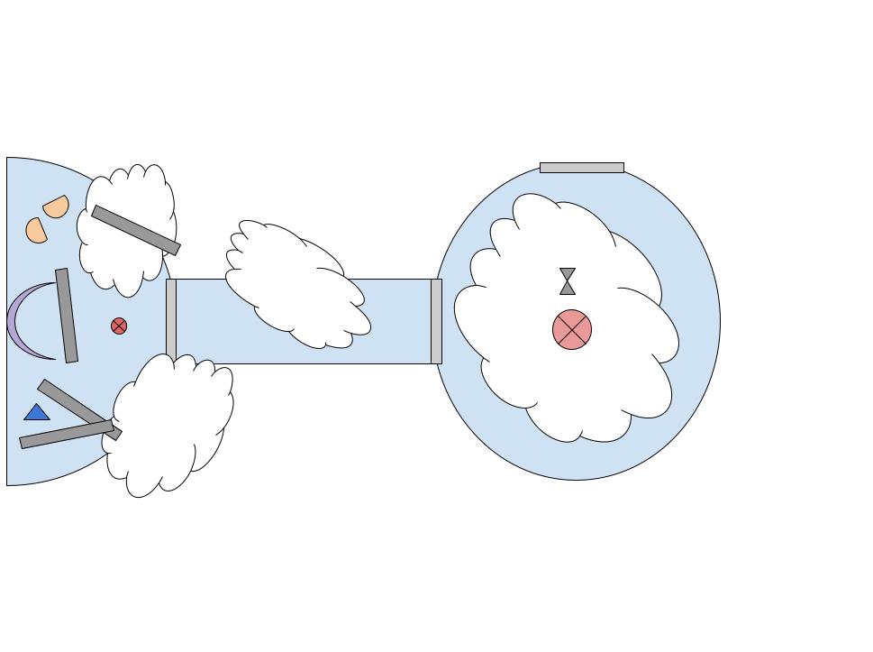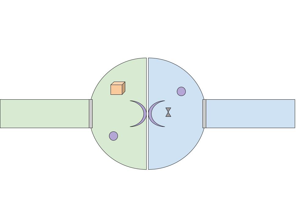 Bild | 04/2022 | Eine Skizze der Portalkammer auf Kintoran II mit der (sinngemäß) angefügten Zielkammer auf Aovis, wie sie durch die Linse der ferngesteuerten Sonde zu sehen war. |